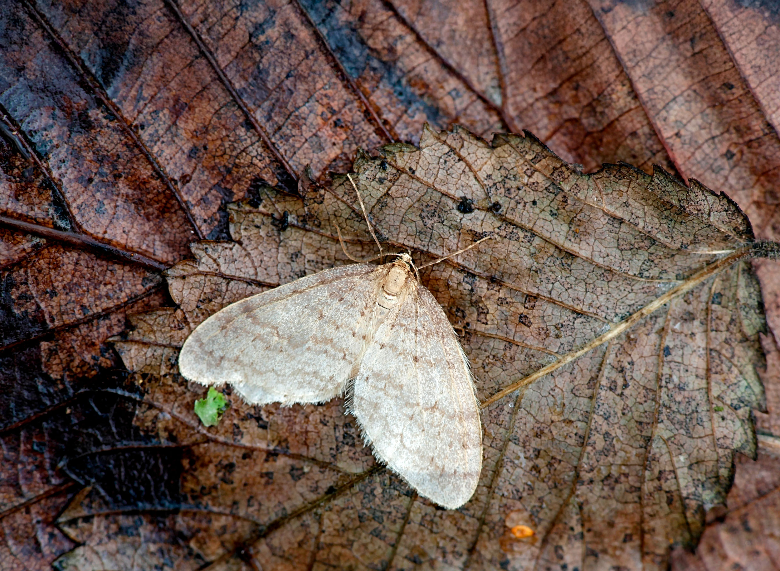 This moth, although rather dowdy, has extraordinary biology. Not only has the female dispensed with flying, but they are also able to tolerate winter temperatures by producing compounds that stop them from freezing. The eggs, once laid on twigs or in fissures on bark, remain dormant until the spring, awaiting the flush of new plant growth. Oak, birches, Hawthorn and heathers are favoured, but they will use a wide variety of food plants. When they hatch, the caterpillars set to work devouring the soft, new leaves. In turn, the huge numbers of Winter Moth caterpillars are an important food source for many bird species.